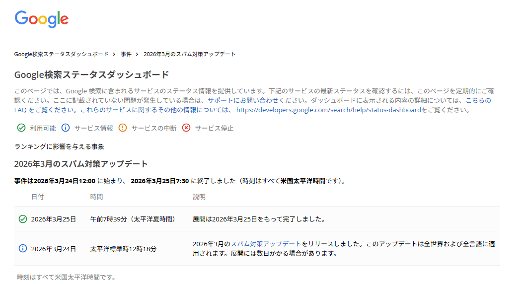 2026年3月27日18時ごろから、Googleコアアルゴリズムアップデートが開始されました。